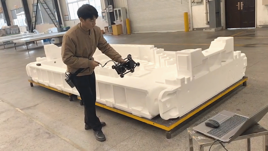 使用HyperScanPlus智能光學(xué)追蹤3D掃描儀,搭配無線模塊FreeBox,對鑄件模具進(jìn)行快速掃描