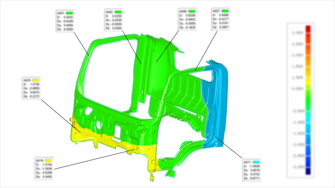 與CAD數(shù)據(jù)進(jìn)行比對,生成偏差圖,用不同顏色直觀表達(dá)了車身與CAD數(shù)據(jù)之間的偏差趨勢。